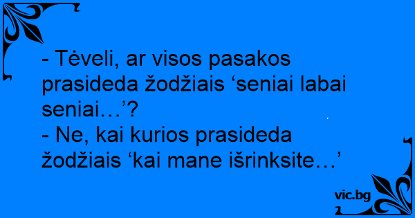 - Tėveli, ar visos pasakos prasideda žodžiais ‘seniai labai seniai…’?