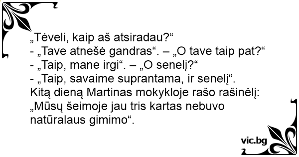 - „Tave atnešė gandras“. – „O tave taip pat?“
