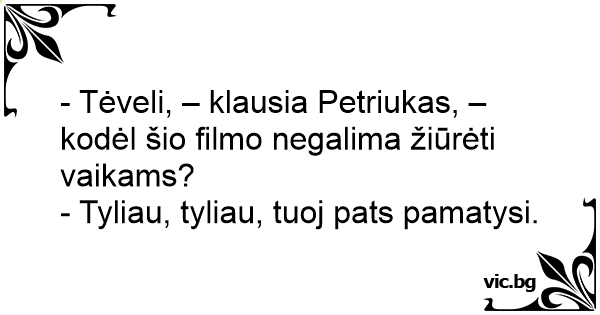 - Tėveli, – klausia Petriukas, – kodėl šio filmo negalima žiūrėti vaikams?