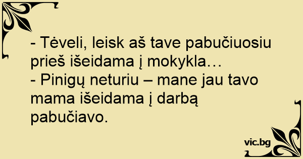 - Pinigų neturiu – mane jau tavo mama išeidama į darbą pabučiavo.