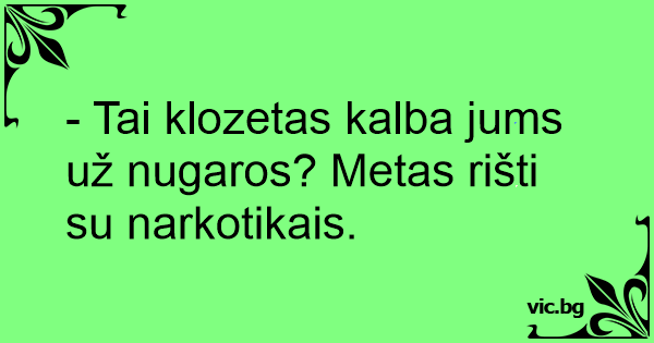 - Tai klozetas kalba jums už nugaros? Metas rišti su narkotikais.