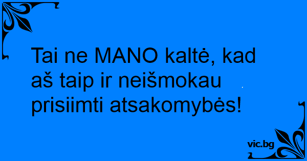 Tai ne MANO kaltė, kad aš taip ir neišmokau prisiimti atsakomybės!