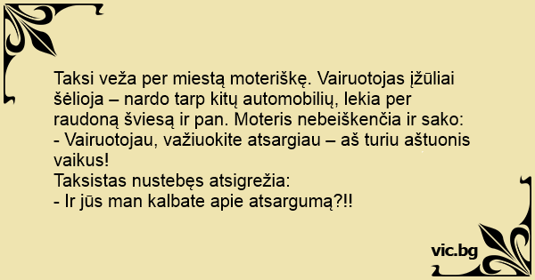 - Vairuotojau, važiuokite atsargiau – aš turiu aštuonis vaikus!