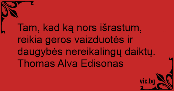 Tam, kad ką nors išrastum, reikia geros vaizduotės ir daugybės nereikalingų daiktų. Thomas Alva Edisonas