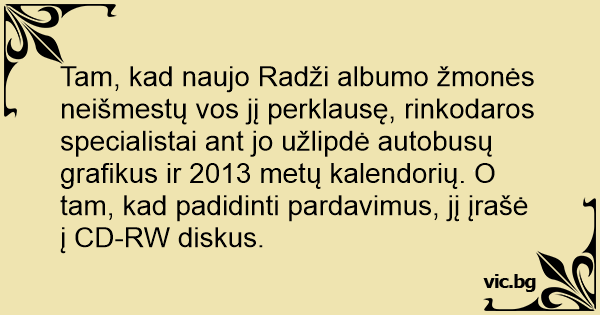 Tam, kad naujo Radži albumo žmonės neišmestų vos jį perklausę, rinkodaros specialistai ant jo užlipdė autobusų grafikus ir 2013 metų kalendorių. O tam, kad padidinti pardavimus, jį įrašė į CD-RW diskus.