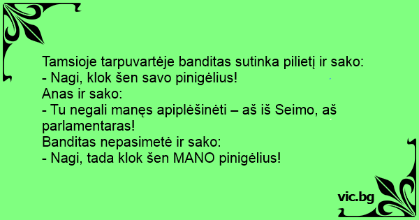 - Tu negali manęs apiplėšinėti – aš iš Seimo, aš parlamentaras!