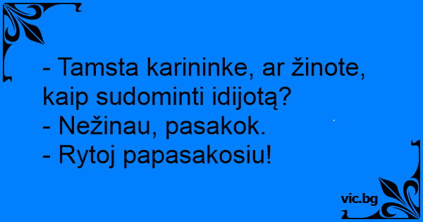 - Tamsta karininke, ar žinote, kaip sudominti idijotą?