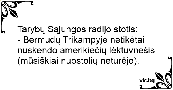 - Bermudų Trikampyje netikėtai nuskendo amerikiečių lėktuvnešis (mūsiškiai nuostolių neturėjo).