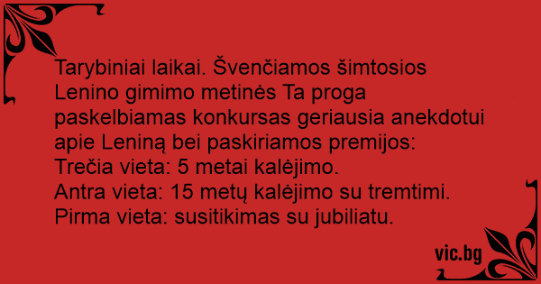 Tarybiniai laikai. Švenčiamos šimtosios Lenino gimimo metinės Ta proga paskelbiamas konkursas geriausia anekdotui apie Leniną bei paskiriamos premijos: