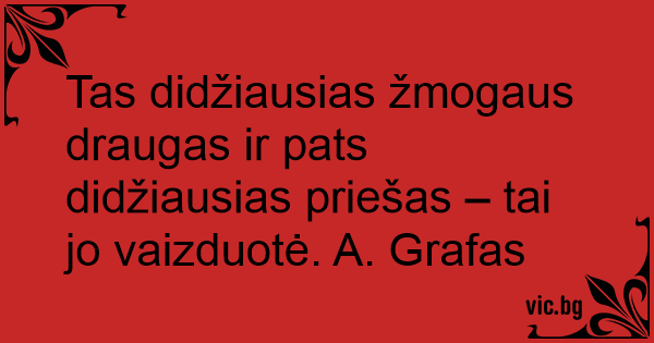 Tas didžiausias žmogaus draugas ir pats didžiausias priešas – tai jo vaizduotė. A. Grafas