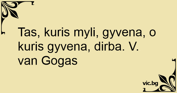 Tas, kuris myli, gyvena, o kuris gyvena, dirba. V. van Gogas