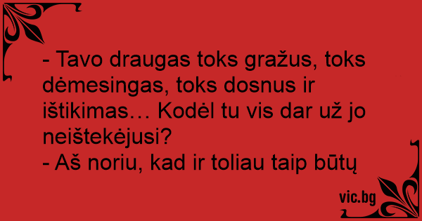 - Tavo draugas toks gražus, toks dėmesingas, toks dosnus ir ištikimas… Kodėl tu vis dar už jo neištekėjusi?