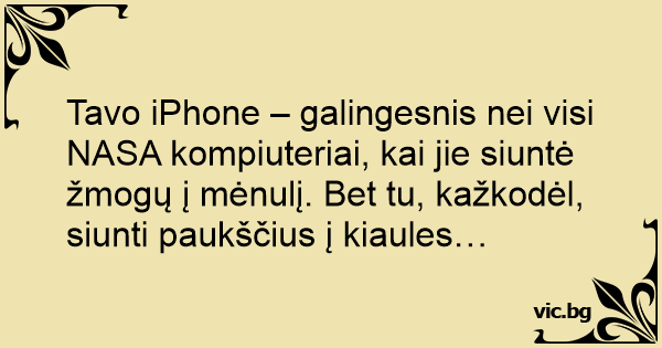 Tavo iPhone – galingesnis nei visi NASA kompiuteriai, kai jie siuntė žmogų į mėnulį. Bet tu, kažkodėl, siunti paukščius į kiaules…