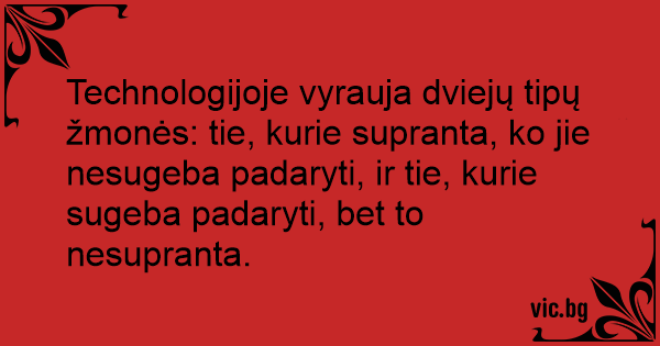 Technologijoje vyrauja dviejų tipų žmonės: tie, kurie supranta, ko jie nesugeba padaryti, ir tie, kurie sugeba padaryti, bet to nesupranta.