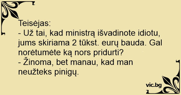 - Už tai, kad ministrą išvadinote idiotu, jums skiriama 2 tūkst. eurų bauda. Gal norėtumėte ką nors pridurti?