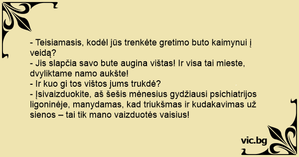 - Teisiamasis, kodėl jūs trenkėte gretimo buto kaimynui į veidą?