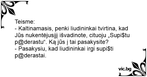 - Kaltinamasis, penki liudininkai tvirtina, kad Jūs nukentėjusįjį išvadinote, cituoju „Supi$tu p@derastu“. Ką jūs į tai pasakysite?