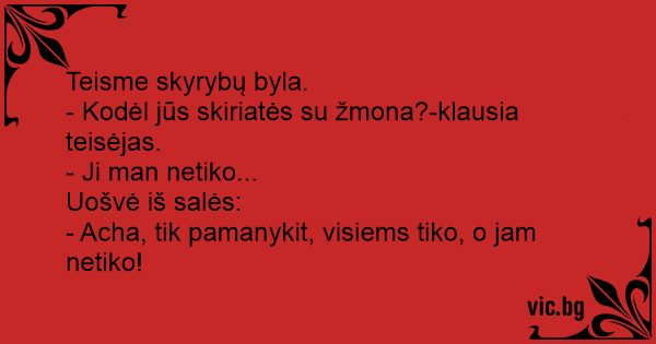 - Kodėl jūs skiriatės su žmona?-klausia teisėjas.