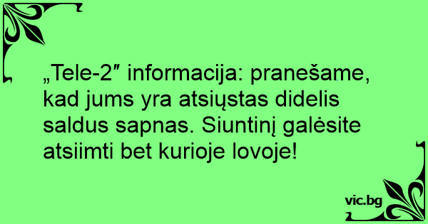 „Tele-2″ informacija: pranešame, kad jums yra atsiųstas didelis saldus sapnas. Siuntinį galėsite atsiimti bet kurioje lovoje!