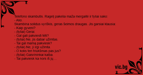 Telefono skambutis. Ragelį pakelia maža mergaitė ir tyliai sako: