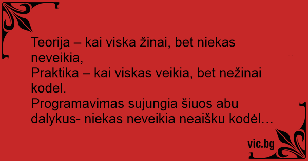 Praktika – kai viskas veikia, bet nežinai kodel.