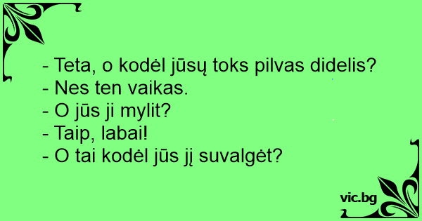 Маленький хлопчик роздивляється вагітну жінку. — Що це у вас? — показує пальчиком на живіт. — Це моє дитятко... — посміхається майбутня мама. — А ви його любите? — Звичайно, дуже люблю! — Тоді...