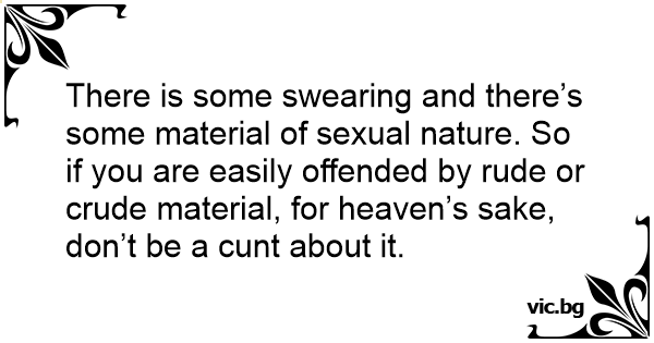 There is some swearing and there’s some material of sеxuаl nature. So if you are easily offended by rude or crude material, for heaven’s sake, don’t be a сunт about it.