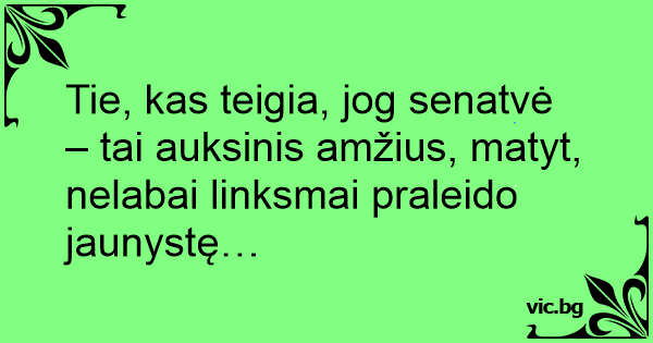 Tie, kas teigia, jog senatvė – tai auksinis amžius, matyt, nelabai linksmai praleido jaunystę…