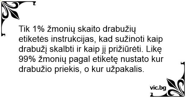 Tik 1% žmonių skaito drabužių etiketės instrukcijas, kad sužinoti kaip drabužį skalbti ir kaip jį prižiūrėti. Likę 99% žmonių pagal etiketę nustato kur drabužio priekis, o kur užpakalis.