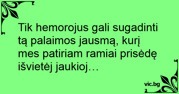 Tik hemorojus gali sugadinti tą palaimos jausmą, kurį mes patiriam ramiai prisėdę išvietėj jaukioj…
