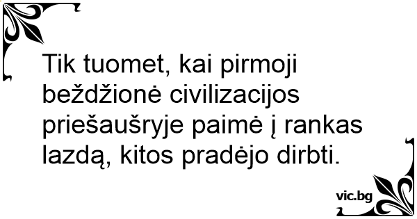 Tik tuomet, kai pirmoji beždžionė civilizacijos priešaušryje paimė į rankas lazdą, kitos pradėjo dirbti.