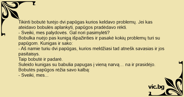 Bobulka nuėjo pas kunigą išpažinties ir pasakė kokių problemų turi su papūgom. Kunigas ir sako: