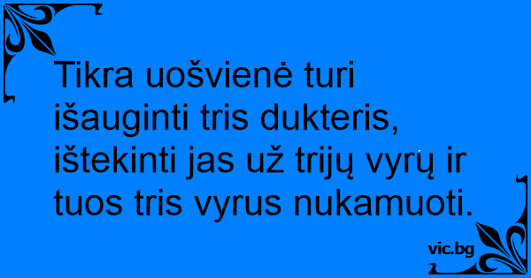 Tikra uošvienė turi išauginti tris dukteris, ištekinti jas už trijų vyrų ir tuos tris vyrus nukamuoti.