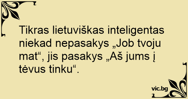 Tikras lietuviškas inteligentas niekad nepasakys „Job tvoju mat“, jis pasakys „Aš jums į tėvus tinku“.