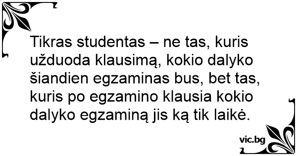 Tikras studentas – ne tas, kuris užduoda klausimą, kokio dalyko šiandien egzaminas bus, bet tas, kuris po egzamino klausia kokio dalyko egzaminą jis ką tik laikė.