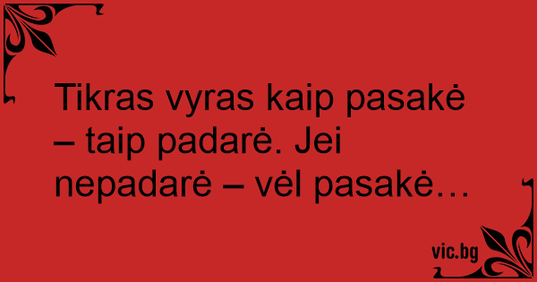 Tikras vyras kaip pasakė – taip padarė. Jei nepadarė – vėl pasakė…