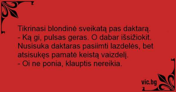 - Ką gi, pulsas geras. O dabar išsižiokit.