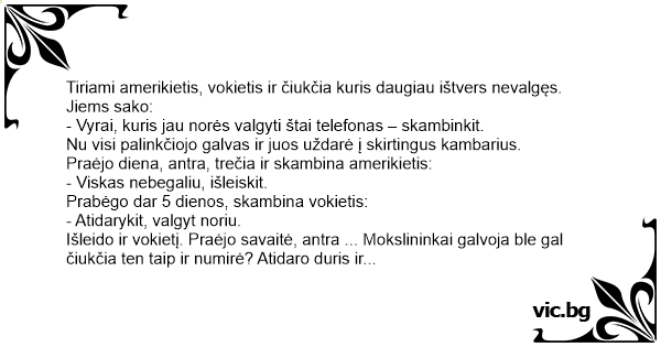 Praėjo diena, antra, trečia ir skambina amerikietis: