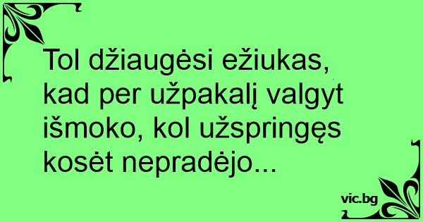 Tol džiaugėsi ežiukas, kad per užpakalį valgyt išmoko, kol užspringęs kosėt nepradėjo...