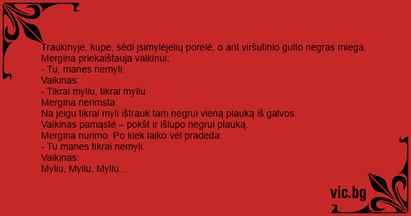 Mergina na jeigu tikrai myli, tai išlupk dar vieną plauką tam negrui iš galvos.