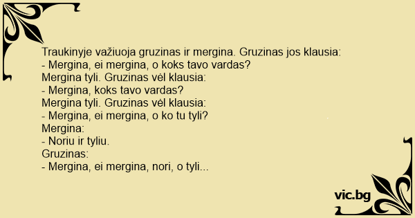 - Mergina, ei mergina, o ko tu tyli?