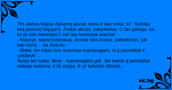 - Klausyk, nepažystamasai, atrodai toks žvalus, patenkintas, juk taip norisi… na žinai ko…