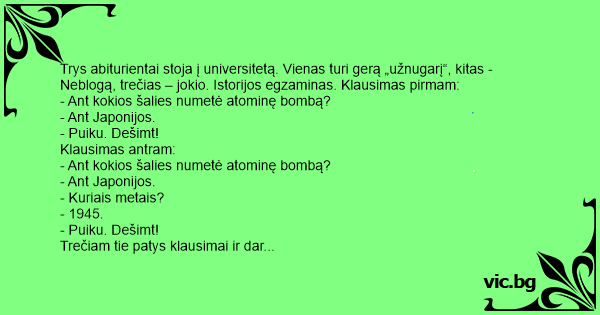 Neblogą, trečias – jokio. Istorijos egzaminas. Klausimas pirmam: