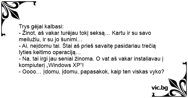 - Na, tai irgi jau seniai žinoma. O vat aš vakar instaliavau į kompiuterį „Windows XP“!