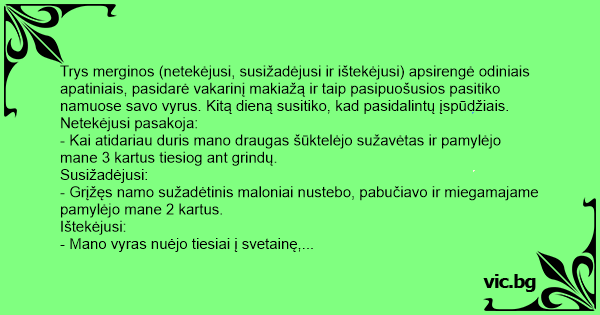- Grįžęs namo sužadėtinis maloniai nustebo, pabučiavo ir miegamajame pamylėjo mane 2 kartus.