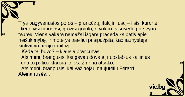 Tada to paties klausia italas. Žmona atsako: