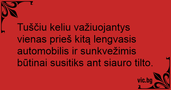 Tuščiu keliu važiuojantys vienas prieš kitą lengvasis automobilis ir sunkvežimis būtinai susitiks ant siauro tilto.
