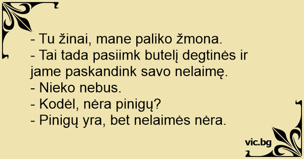 - Tai tada pasiimk butelį degtinės ir jame paskandink savo nelaimę.