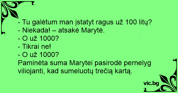 - Tu galėtum man įstatyt ragus už 100 litų?