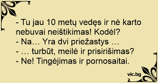 - Tu jau 10 metų vedęs ir nė karto nebuvai neištikimas! Kodėl?